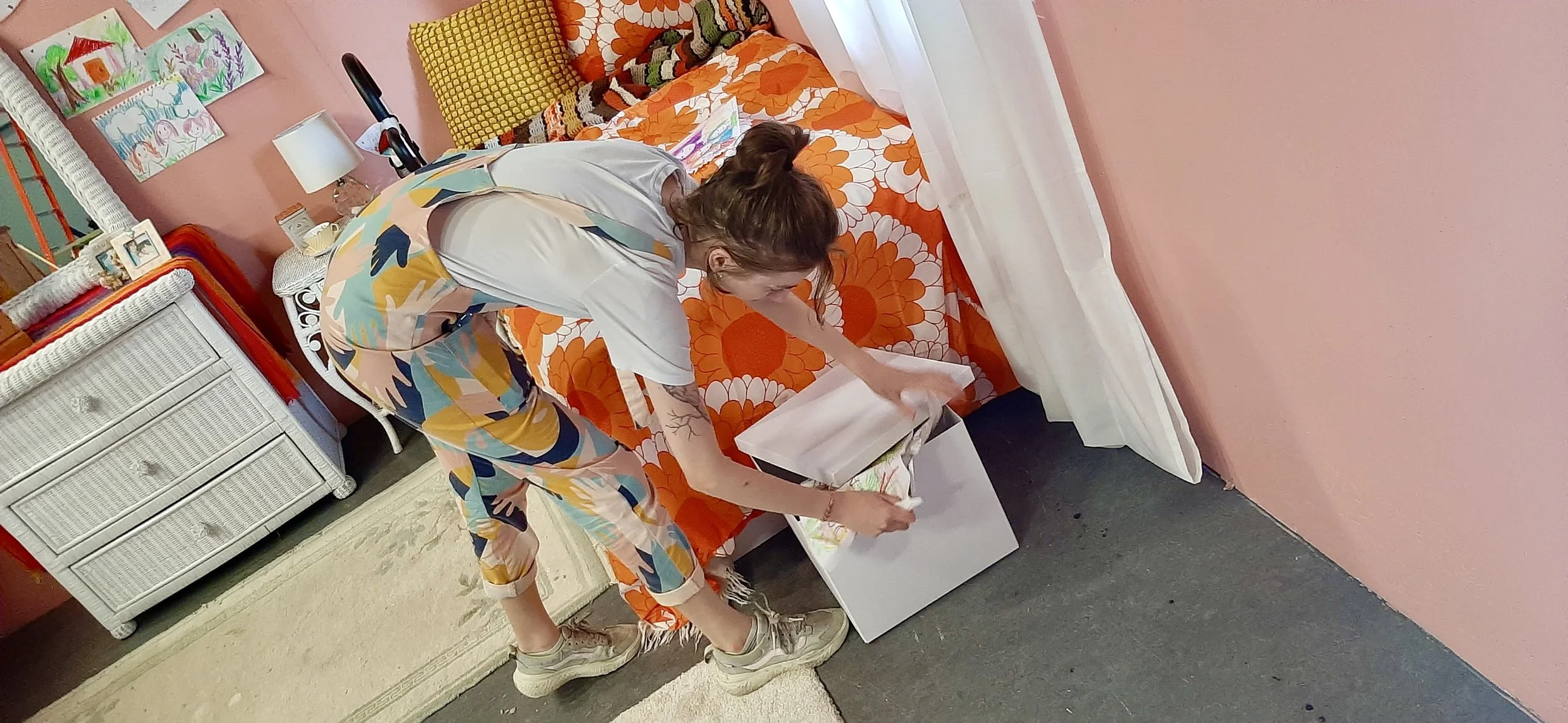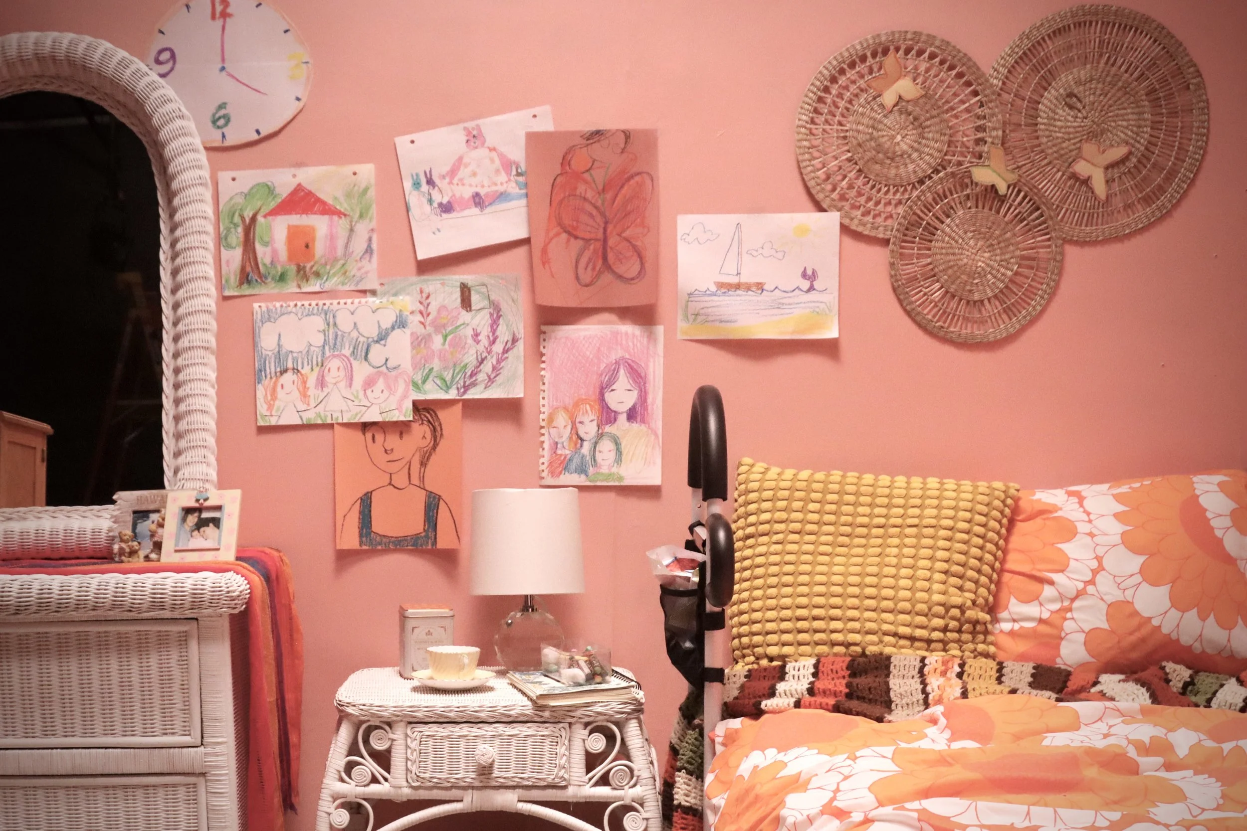 The technical challenge was putting up the flats within a confined space. After that, it was time to apply all my careful characterizations of Margaret, to create her quirky bedroom details.