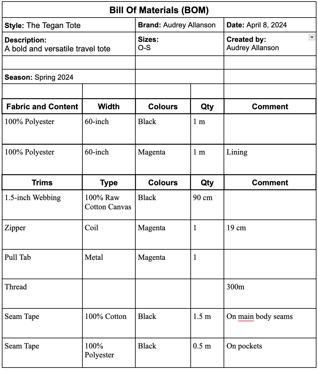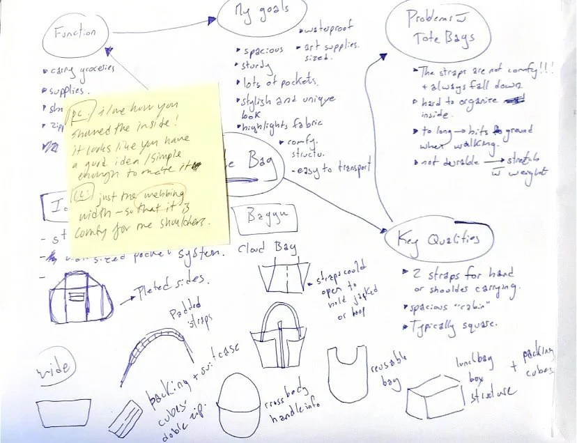 I broke down the concept of a tote bag, and developed a list of priorities:
