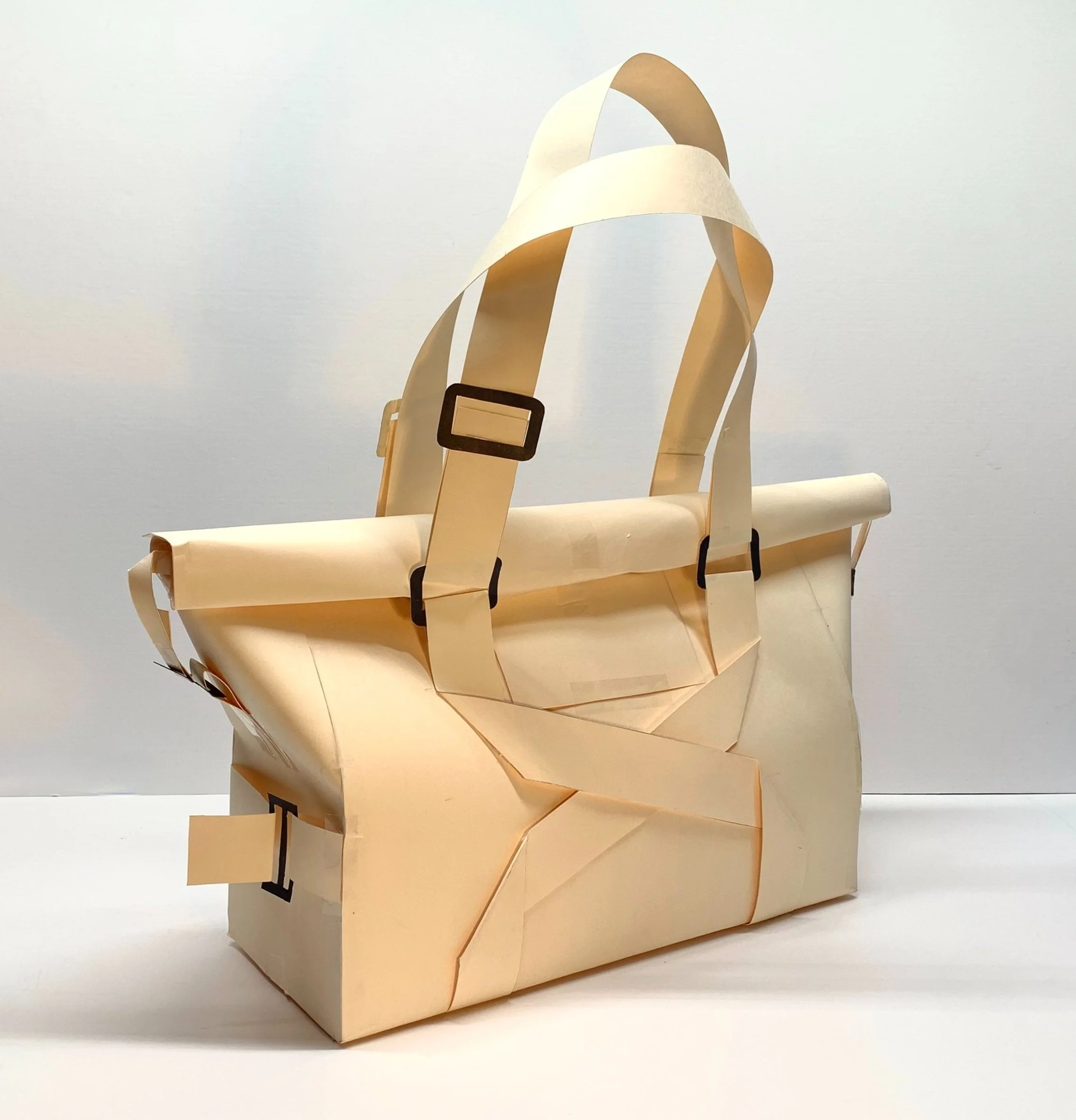 I made a prototype for my key features: an expandable roll top, side tighteners, and a versatile webbing x